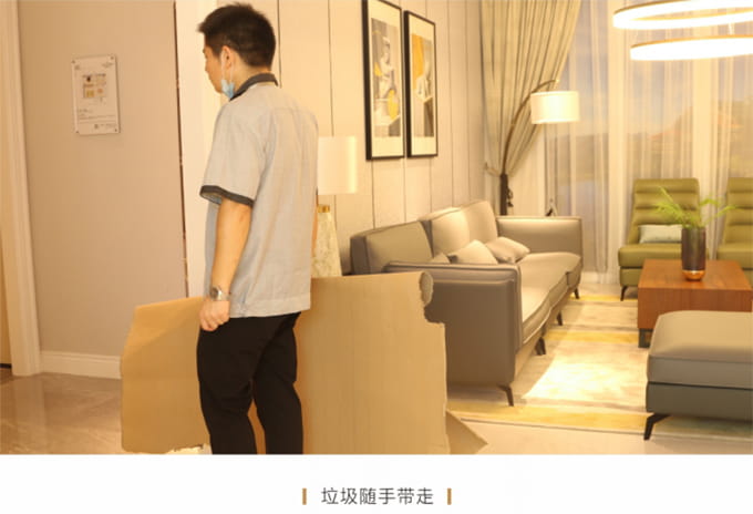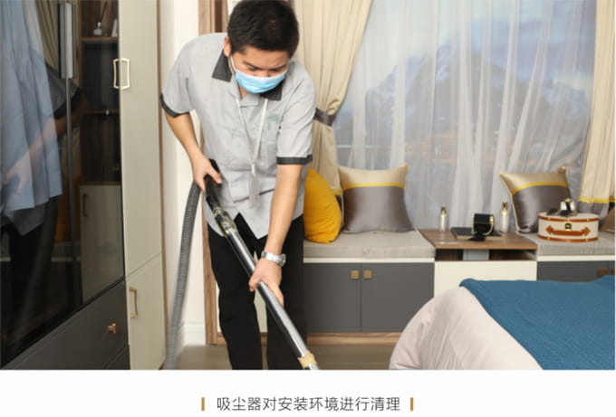 產(chǎn)品安裝確認(rèn)無誤后及時(shí)清理房間內(nèi)因安裝產(chǎn)生的垃圾并保持空氣流暢,然后用干凈的抹布將家具擦拭一遍,確保產(chǎn)品清潔,用吸塵器對(duì)安裝環(huán)境進(jìn)行清理,并對(duì)所有安裝好的產(chǎn)品拍攝記錄作為完工效果備案。