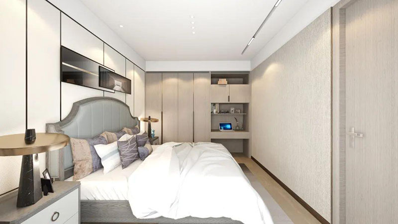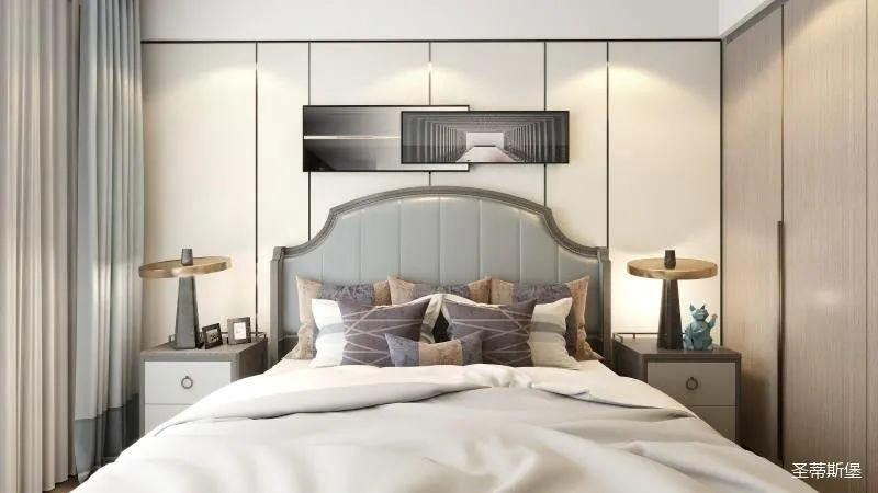 ▲次臥空間主要是以淺色為底調(diào),大面積的莫蘭迪色與淺色相平衡。極強(qiáng)線性裝飾畫帶來的延伸感讓視覺煥然一新。少許的金屬元素攝入,瞬間提升了空間的精致度,將溫潤雅致與時尚輕奢糅合在同一空間里,每一處都洋溢著浪漫的氣息。