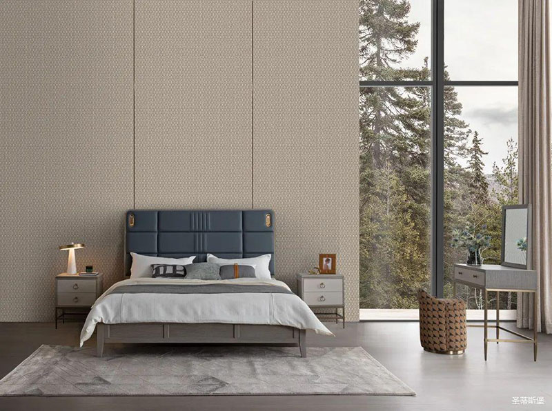主臥擁有貼近自然的魔力,藍(lán)色床屏色彩與外界的自然綠相互吸引,凹凸的線性塊狀軟包設(shè)計(jì),線條輕盈又流暢,打造了臥室背景強(qiáng)烈的立體感,金屬包裹的感應(yīng)小夜燈,守護(hù)你的每個夜晚,令睡眠更具安全感。