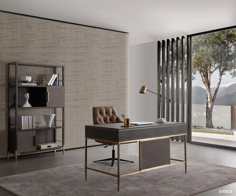 沉靜雅致的書房空間,溫潤實(shí)木與硬朗金屬線條相互配合,運(yùn)用基礎(chǔ)幾何,打造空間的高級感。輕奢質(zhì)感緩緩流淌,書籍整齊,擺件精致,無一不追求著精致細(xì)節(jié)與極致的品味,營造出時(shí)尚與沉穩(wěn)并列的氛圍,詮釋著居者對是生活環(huán)境的內(nèi)在追求。