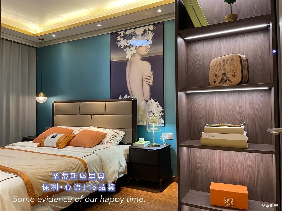 ▲床屏簡約的線條與定制柜的功能設(shè)置讓貼墻的藝術(shù)掛畫,散發(fā)出優(yōu)雅而大膽的美感。