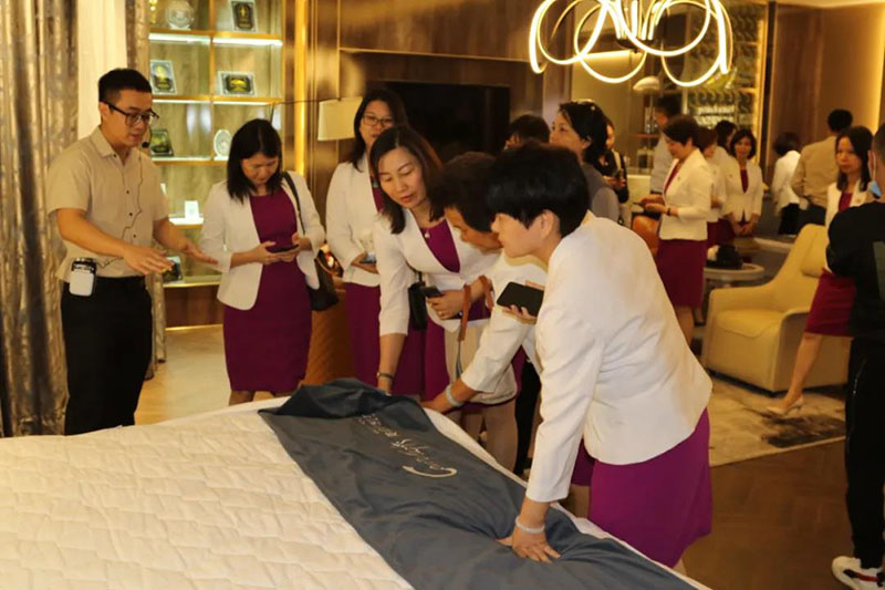嘉賓們感受著夢(mèng)凱莎床墊帶來(lái)的柔軟舒適感,她們紛紛體驗(yàn)了夢(mèng)凱莎床墊的透氣性與科技感,對(duì)夢(mèng)凱莎的智能化系統(tǒng)有了更深入的了解。