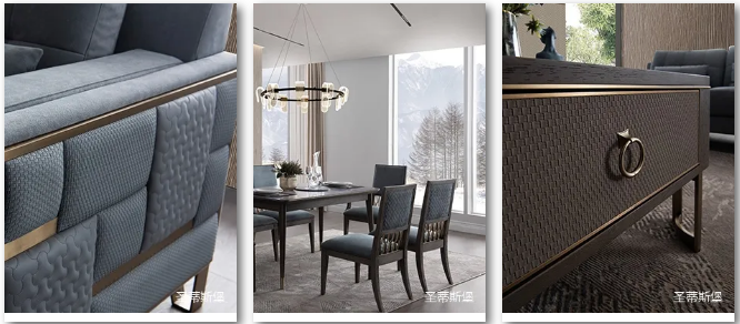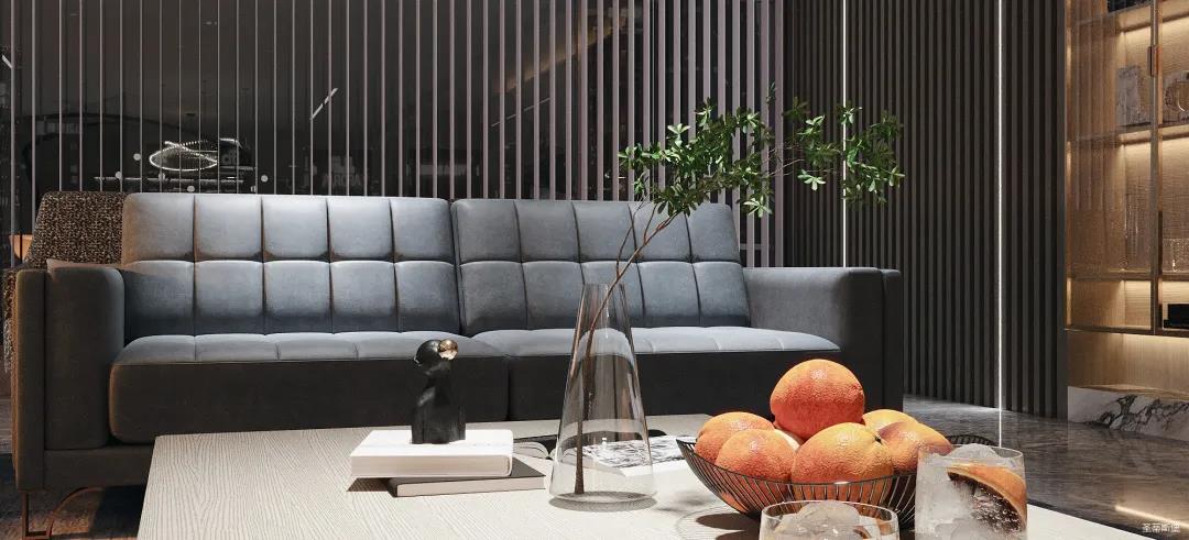 極具細(xì)節(jié)考究的“霸氣”沙發(fā),從霧霾藍(lán)的色彩中彰顯著業(yè)主沉穩(wěn)氣質(zhì)與時尚品位。線條規(guī)律整齊,方塊式的設(shè)計(jì),以摩登時尚演繹著優(yōu)雅的幾何美學(xué)力量。