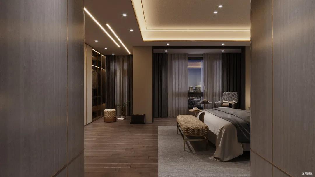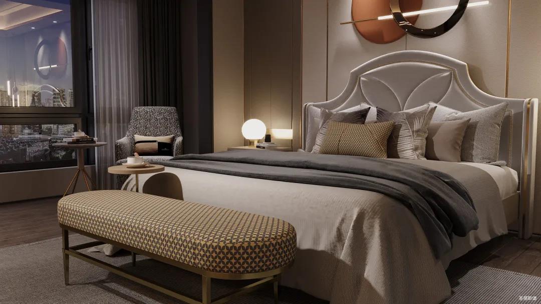 臥室空間整體以護(hù)墻板定制為主,整體設(shè)計(jì)注重空間簡約、自然,沒有繁雜的裝飾。結(jié)合業(yè)主對理想家的想象,采用暖色調(diào)來襯托溫馨實(shí)感,延伸業(yè)主對家的定義,用最質(zhì)樸的木紋融合極簡線條平鋪的形式,體悟自然的溫度,為都市生活帶去不一樣的體驗(yàn)感。