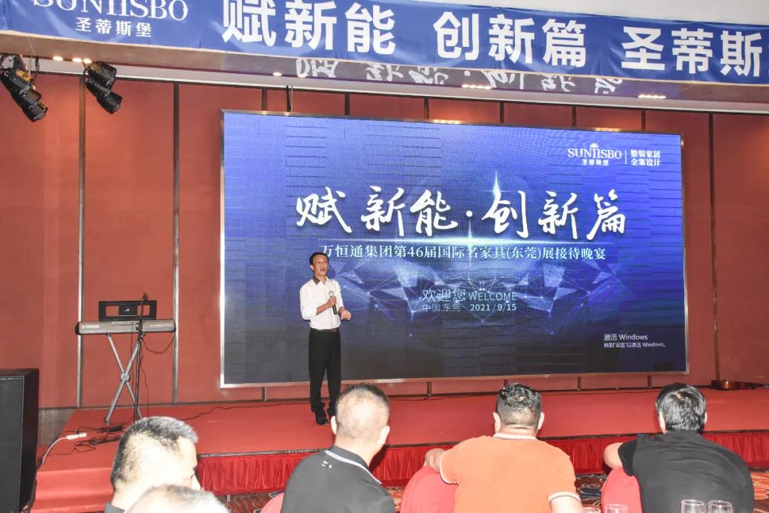 9月15日晚6時許,以“創(chuàng)新能,賦新篇”為主題的VSPORTS勝利因您更精彩集團第46屆國際家具展接待晚宴在虎門豐泰花園酒店舉行。