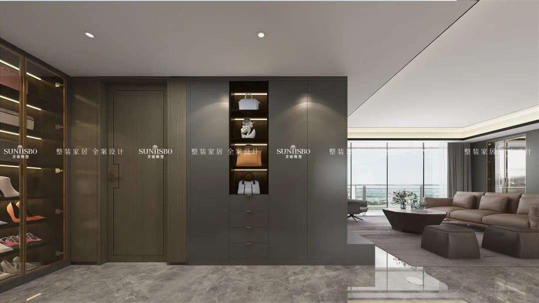 入戶采用的是煙熏色,搭配金屬把手,配合透明的鞋柜,整個(gè)空間看起來簡(jiǎn)約時(shí)尚大氣,男主人表示這就是他想象中的樣子。
