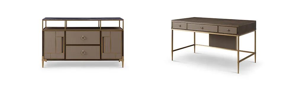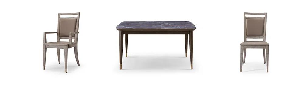 餐桌以簡潔干練造型為主,高級百搭的灰色調(diào),軟包真皮,金屬鑲嵌的細(xì)節(jié),打造出悠閑奢華、優(yōu)雅精致的風(fēng)格,讓家的味道從一日三餐中抵達(dá)內(nèi)心深處。